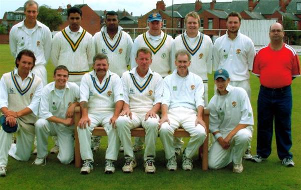 row: N Birkett, N Ahmed, S Patel, S Willis, C Flinton, P Hughes, D Meldrum (scorer)